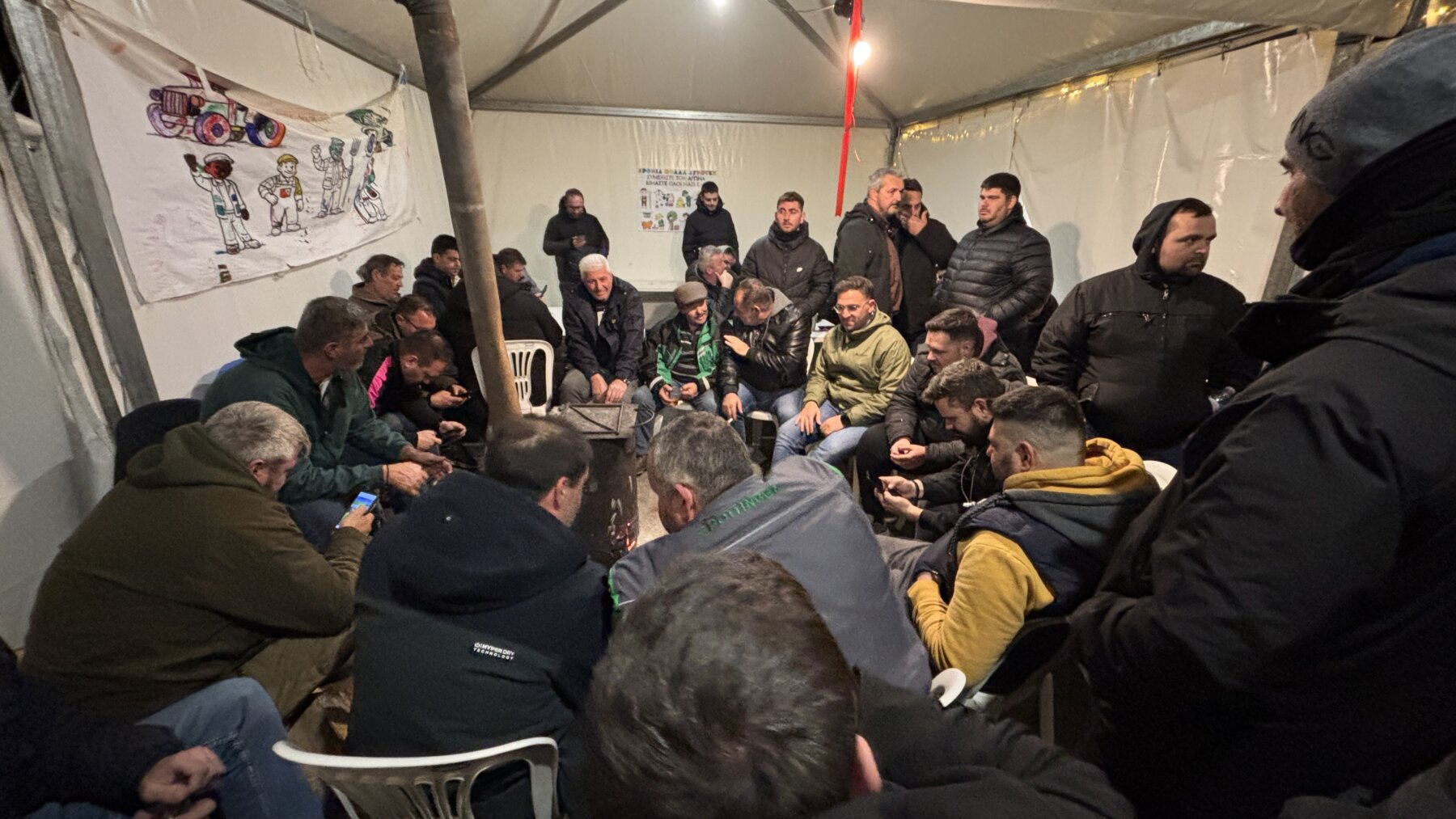 Κατά τη διάρκεια της μαζικής γενικής συνέλευσης που πραγματοποιήθηκε το βράδυ της Δευτέρας 12 Ιανουαρίου στον κόμβο της Νίκαιας, οι παραγωγοί ενημερώθηκαν για το θεσμικό αδιέξοδο που προέκυψε σχετικά με τη σύνθεση της αντιπροσωπείας και το πλαίσιο της επικείμενης συνάντησης στο Μέγαρο Μαξίμου.