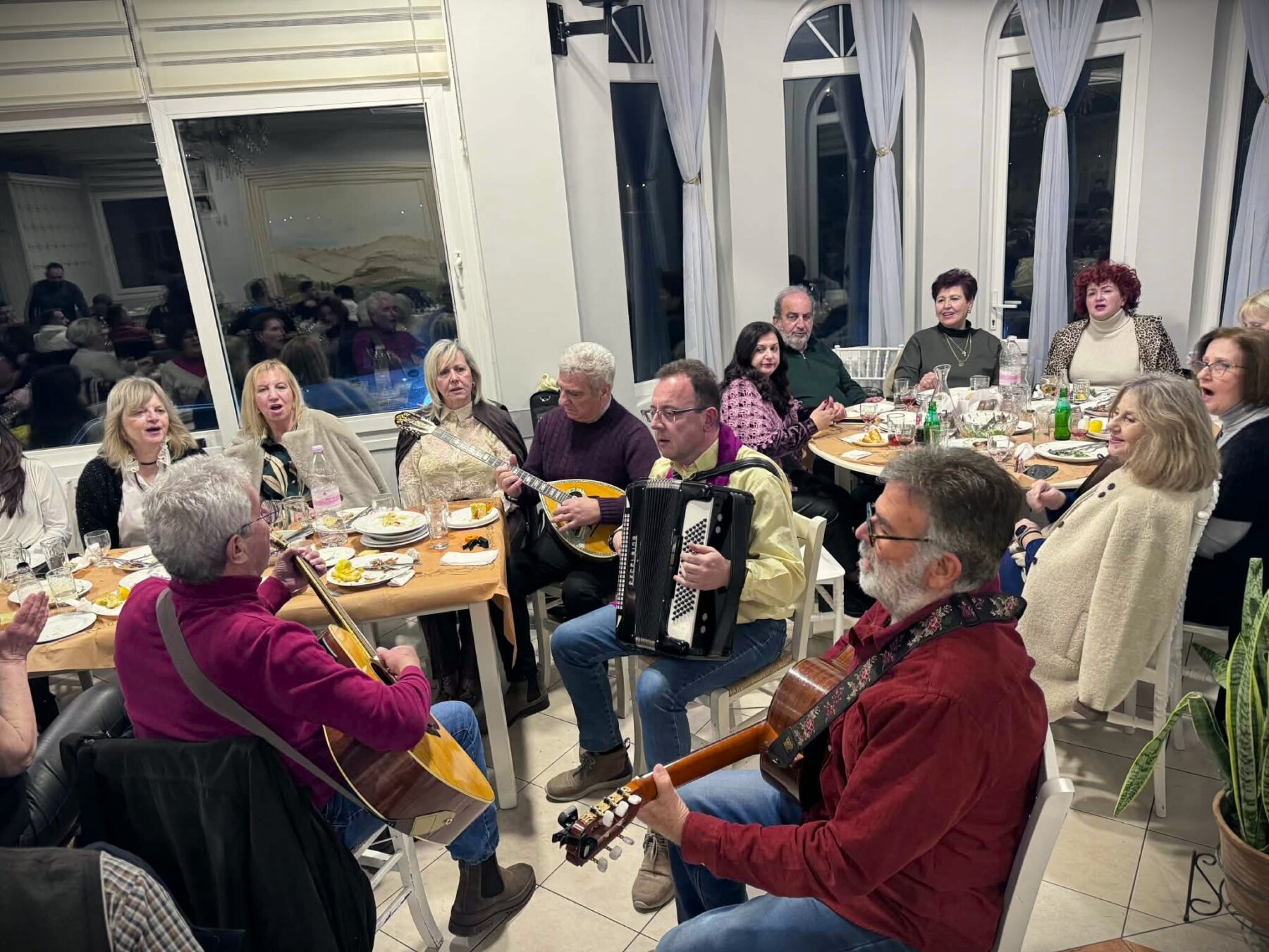 Ακολούθησε γλέντι με πολύ τραγούδι και χορό από την «ορχήστρα των χορωδών» αποτελούμενη από το μαέστρο Κωνσταντίνο Μάτη στο ακορντεόν, τους Ανδρέα Τράντο και Γιώργο Δρόσο στις κιθάρες, τον Κώστα Καραγιάννη στο μπουζούκι και χορωδούς ως σολίστες στο τραγούδι μέχρι αργά το βράδυ.