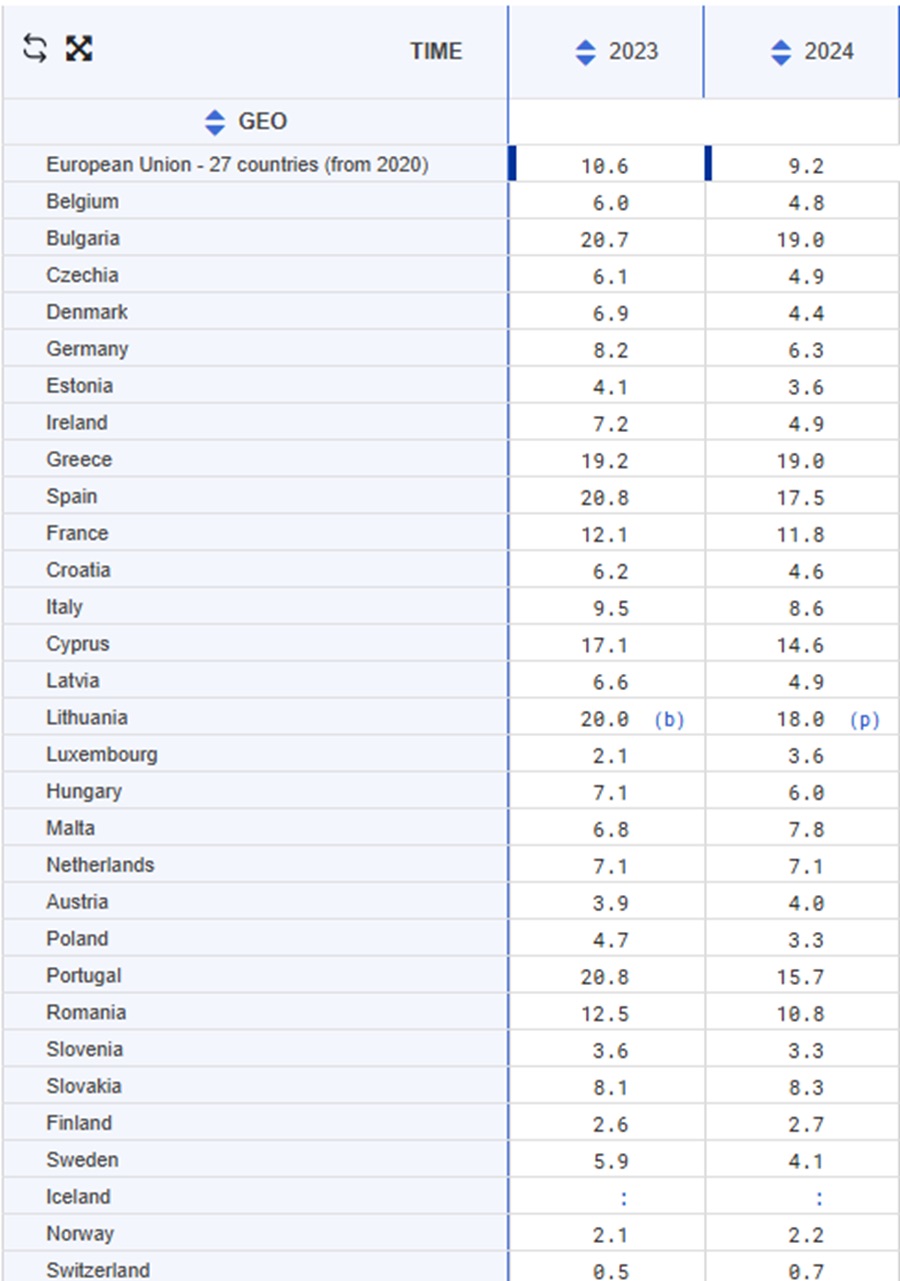 Συνολικά, σε επίπεδο Ευρωπαϊκής Ένωσης, το 9,2% των πολιτών δεν μπορούν να κρατήσουν το σπίτι τους επαρκώς ζεστό, σύμφωνα με τα στοιχεία του 2024. Μια βελτίωση της τάξης του 1,4% σε σύγκριση με το 2023 (10,6%).