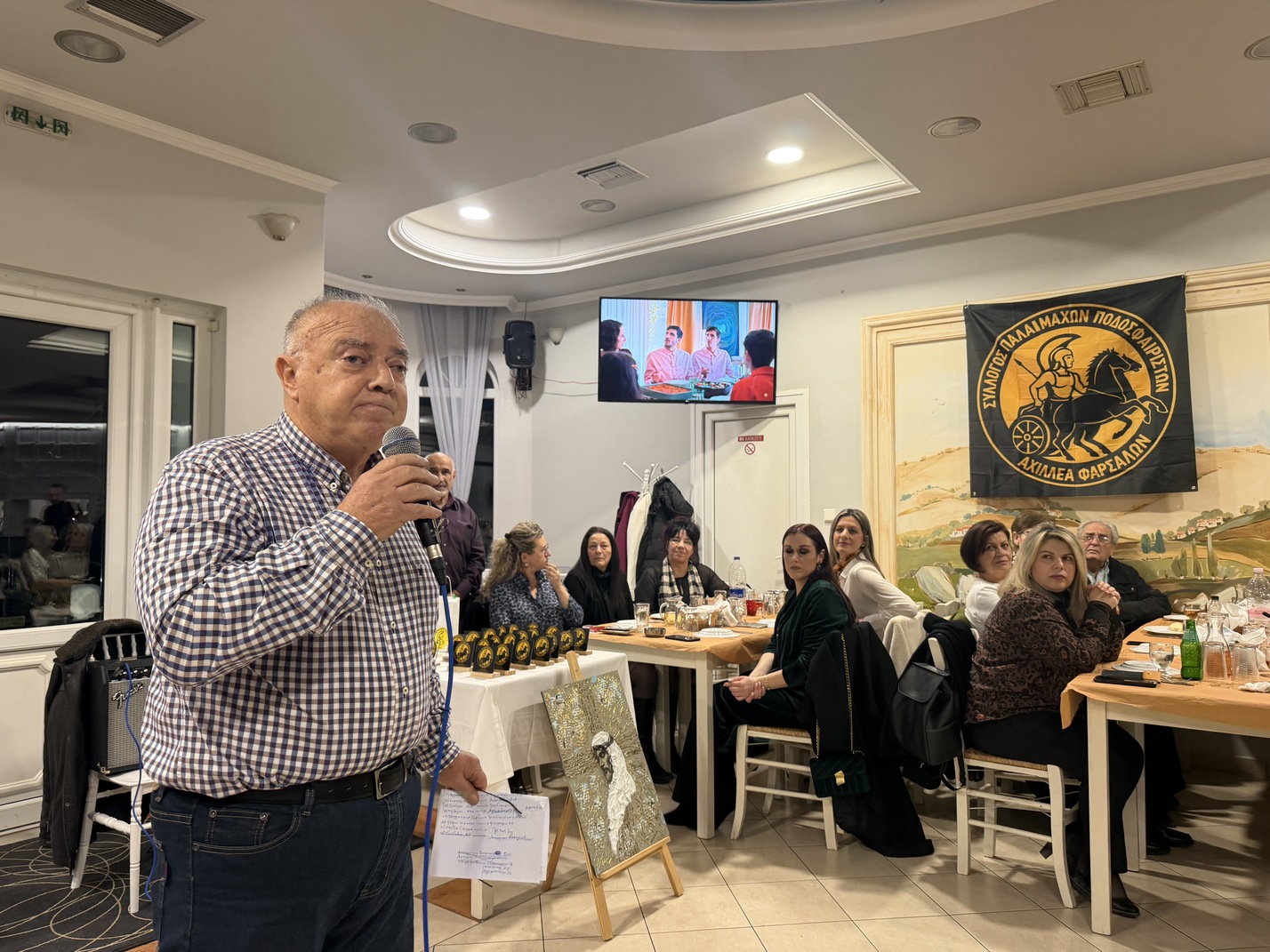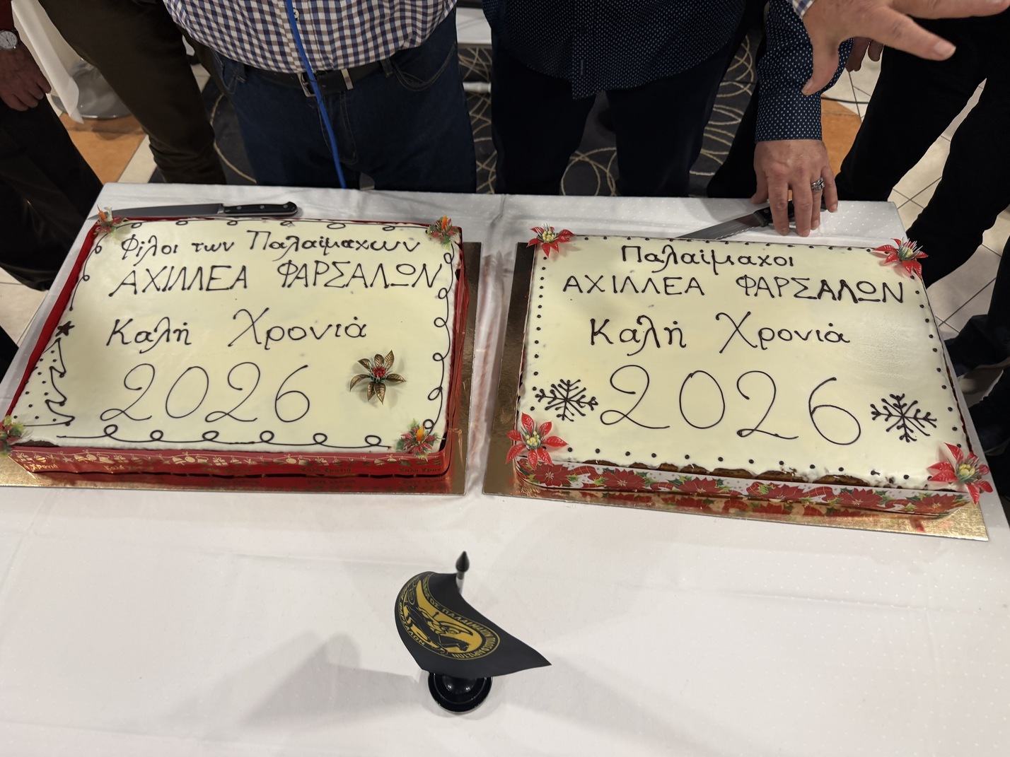 Με πολύ μεγάλη συμμετοχή έκοψε την πρωτοχρονιάτικη βασιλόπιτα ο ανασυσταθείς Σύλλογος Παλαιμάχων Ποδοσφαιριστών του Αχιλλέα Φαρσάλων το βράδυ της Κυριακής 1 Φεβρουαρίου στο κατάστημα “Γεύσεις εν λευκώ” στη Βαμβακού Φαρσάλων.