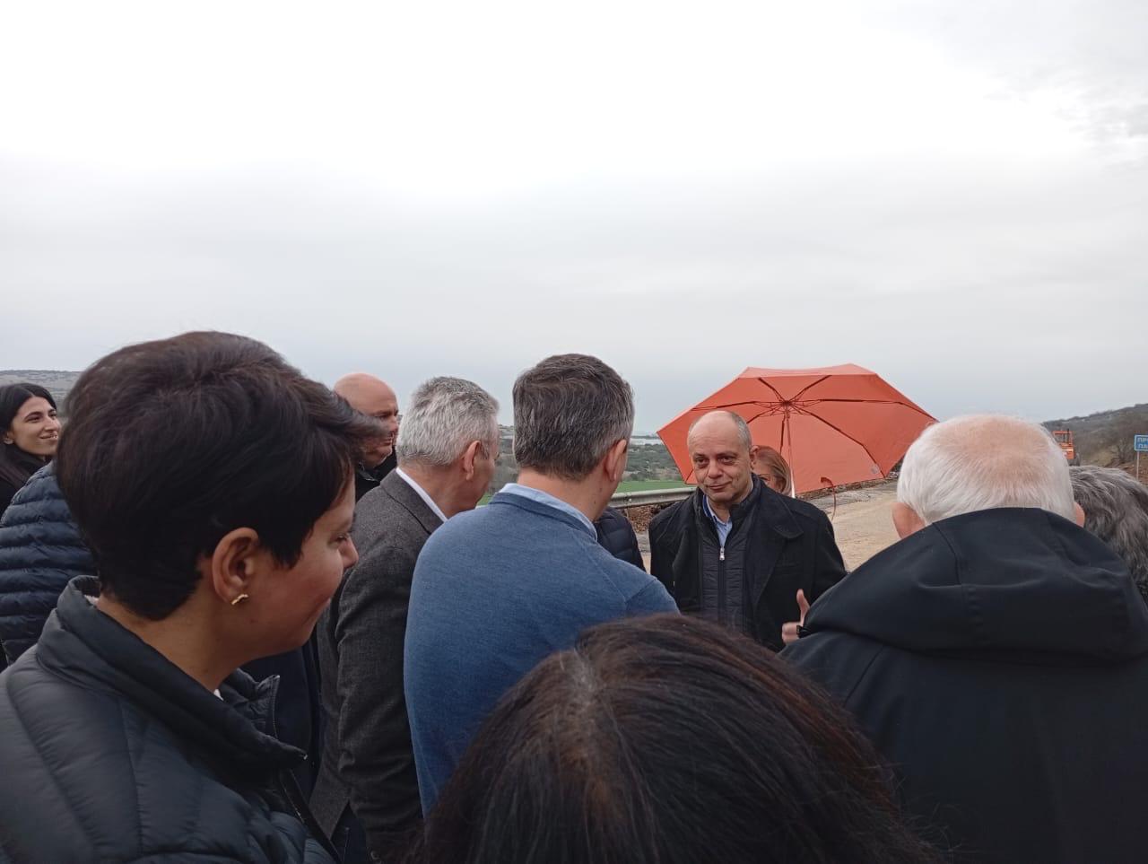 Στη συνέχεια, ο Υπουργός Υποδομών Χρίστος Δήμας επισκέφθηκε τον δρόμο πλάι στο βουνό Σούρλα, στην θέση «Κρηντήρι», όπου είχαν εκδηλωθεί έντονα φαινόμενα κατολισθήσεων.