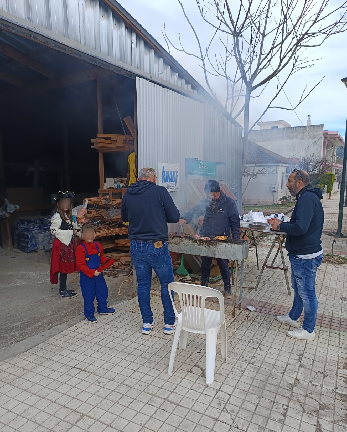 Οι επαγγελματίες που επέλεξαν να στήσουν υπαίθριες ψησταριές μπροστά από τα καταστήματά τους ήταν φέτος μετρημένοι στα δάχτυλα. Αντιθέτως, το έθιμο μεταφέρθηκε κυρίως στις γειτονιές, με τις αυλές των σπιτιών να έχουν την τιμητική τους και τις ψησταριές να παίρνουν «φωτιά».