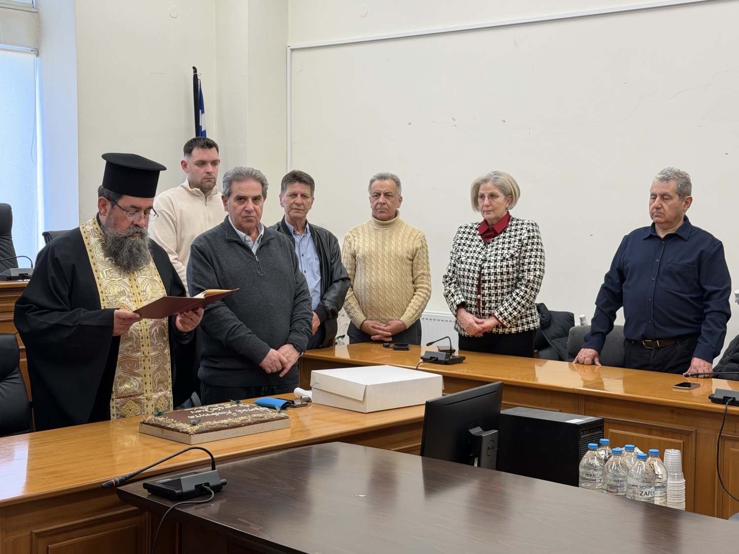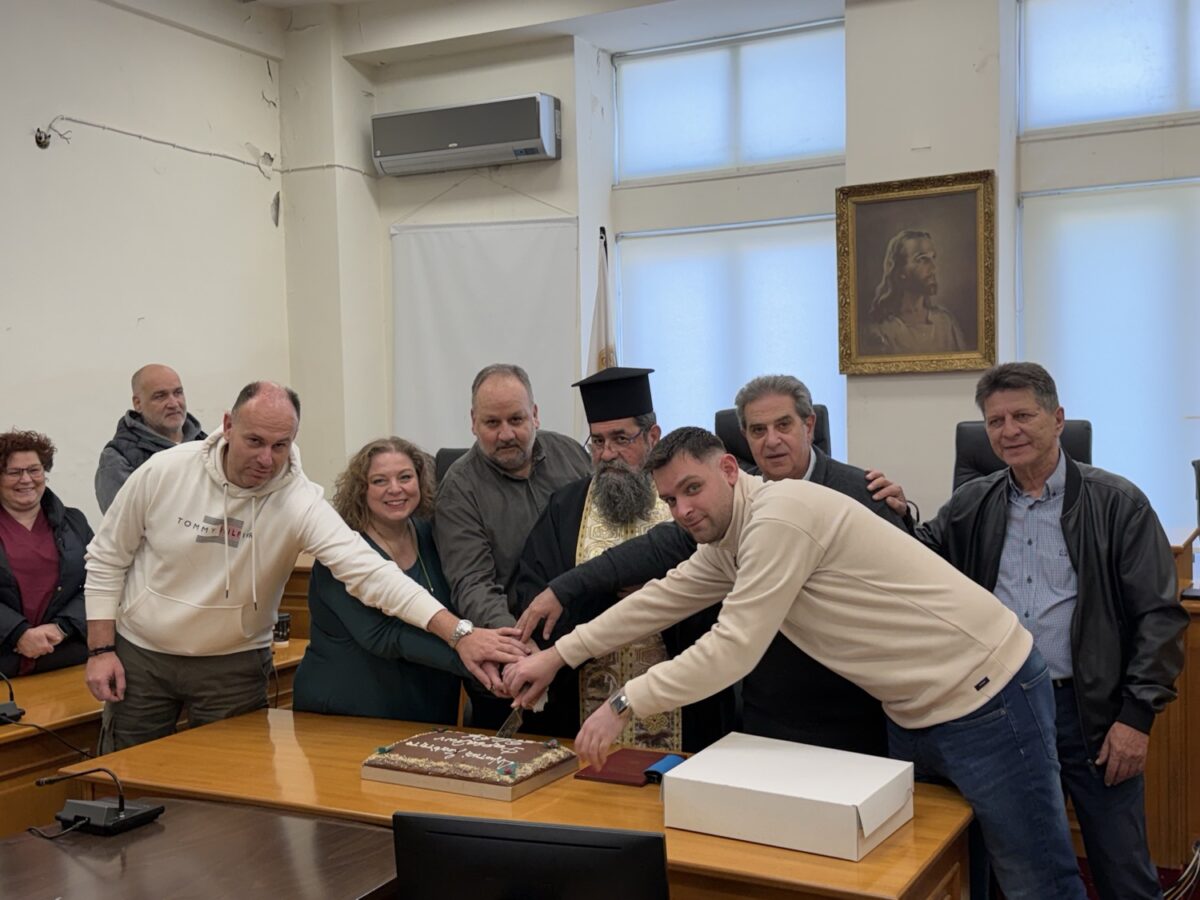 Την κοπή της πίτας πραγματοποίησε ο κ. Βαρακλιώτης από κοινού με τα μέλη της κοινότητας —τους κ.κ. Δημήτρη Πατσιούρα, Φωτεινή Πιτσιάβα, Γιώργο Βαγγελό και Χάρη Βαΐτση— ανταλλάσσοντας ευχές για τη νέα χρονιά.