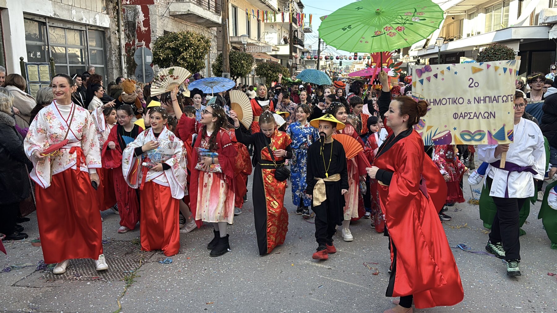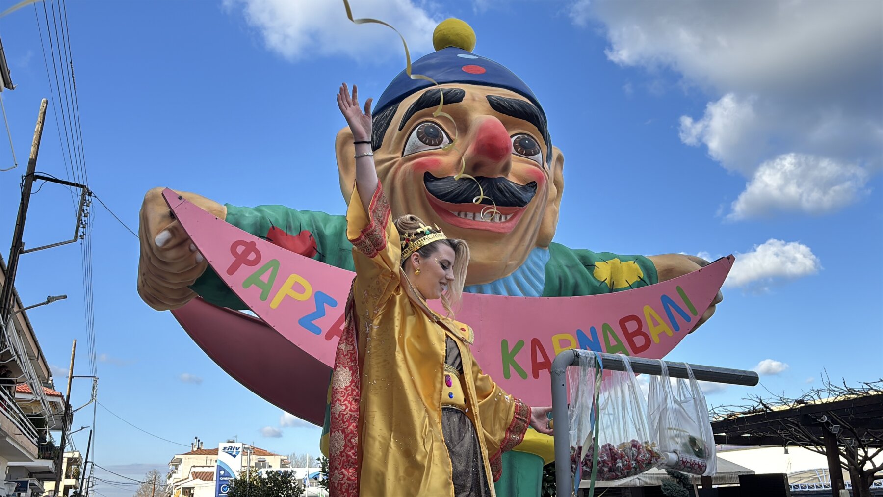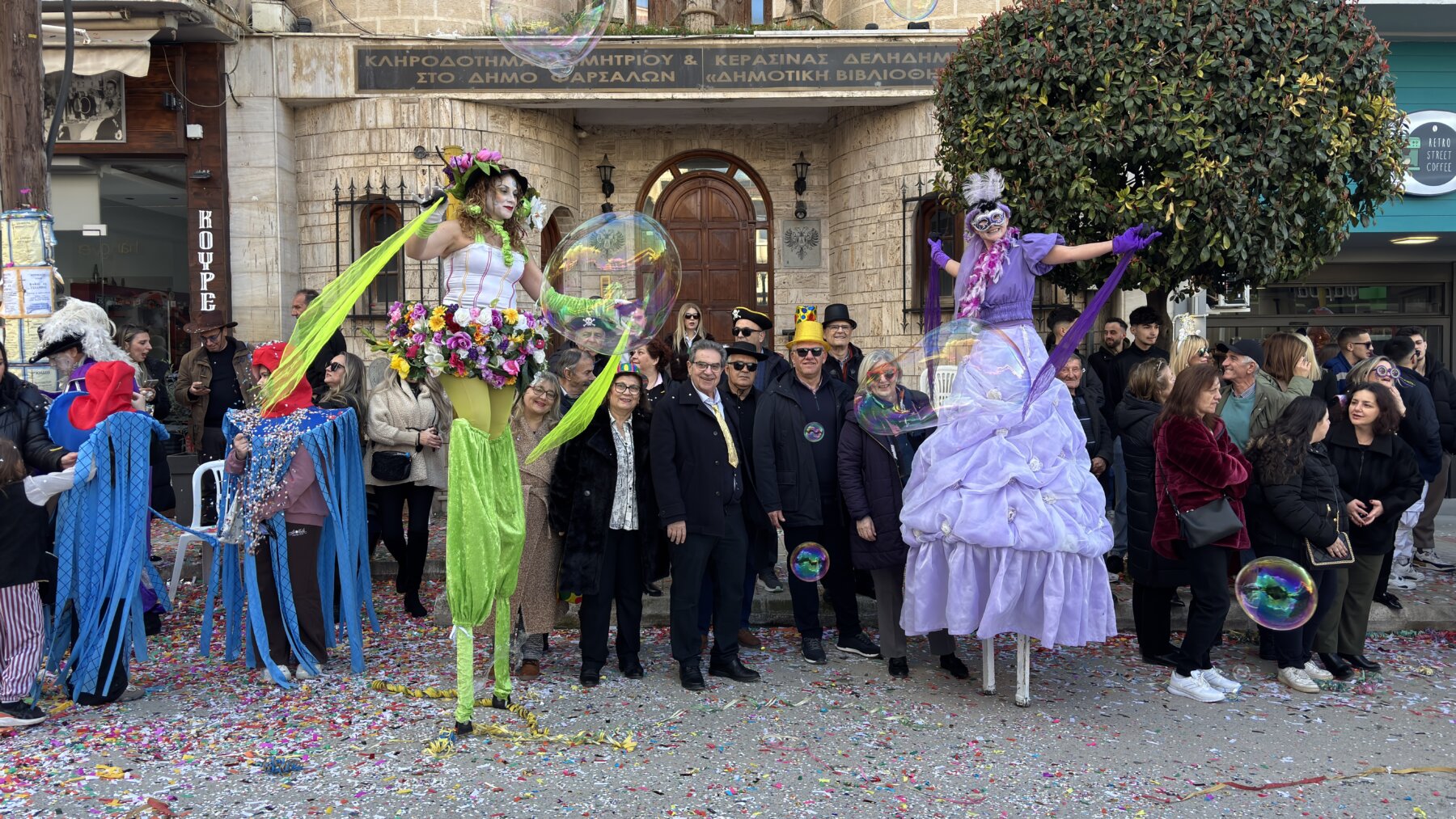 Με επίκεντρο τη μεγάλη παρέλαση που πραγματοποιήθηκε σήμερα το μεσημέρι, τα Φάρσαλα γιόρτασαν την κορύφωση της Αποκριάς. Η πόλη μεταμορφώθηκε σε ένα πολυπολιτισμικό σκηνικό, καθώς το φετινό κεντρικό θέμα, «Ο Γύρος του Κόσμου», έδωσε την ευκαιρία σε συμμετέχοντες και θεατές να ταξιδέψουν νοερά σε διαφορετικές ηπείρους και πολιτισμούς με τη μουσική του Βασίλη Αλεξανδρή. Τη παρουσίαση του καρναβαλίου έκανε ο ηθοποιός Γιάννης Καπετάνιος.