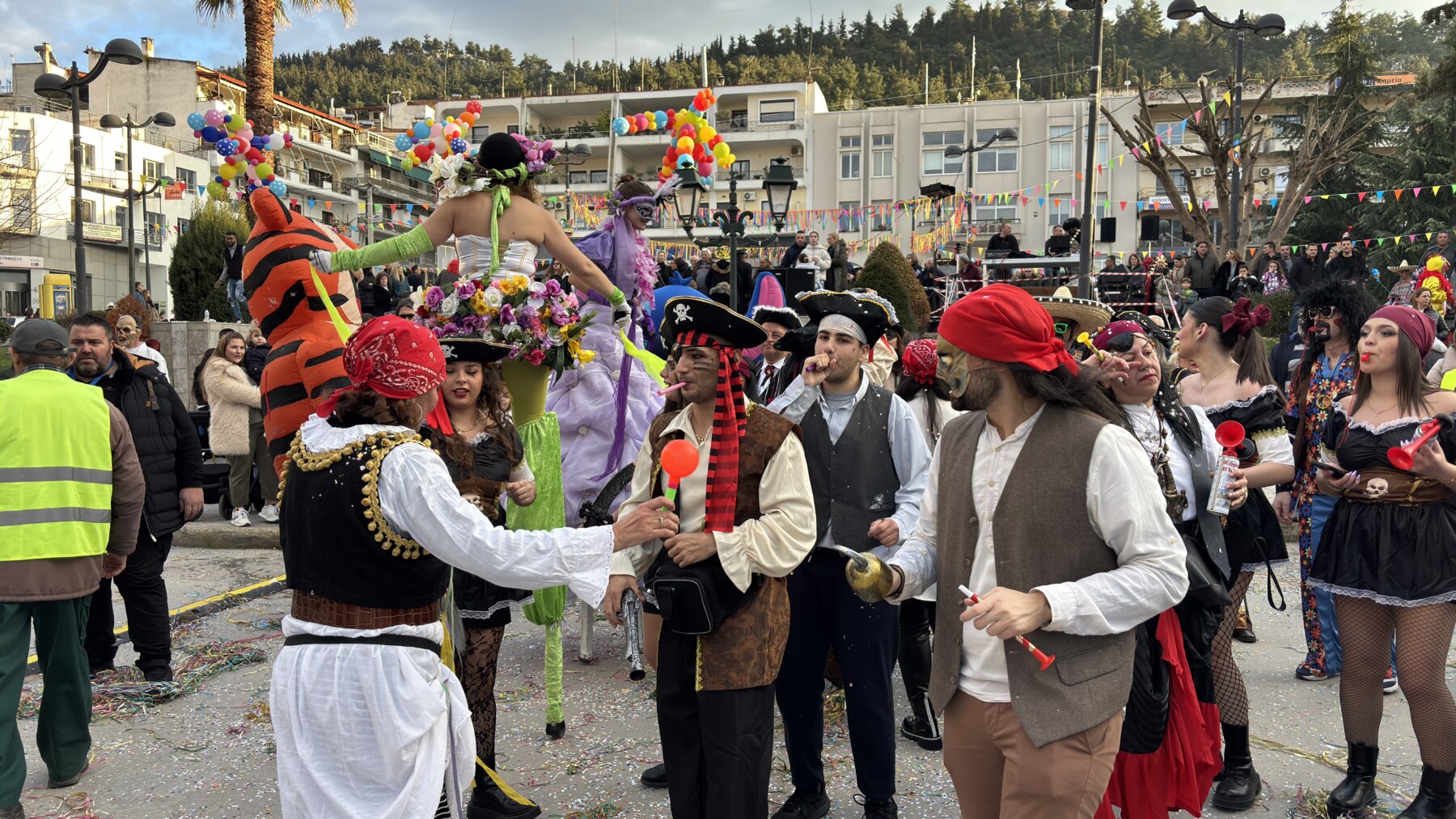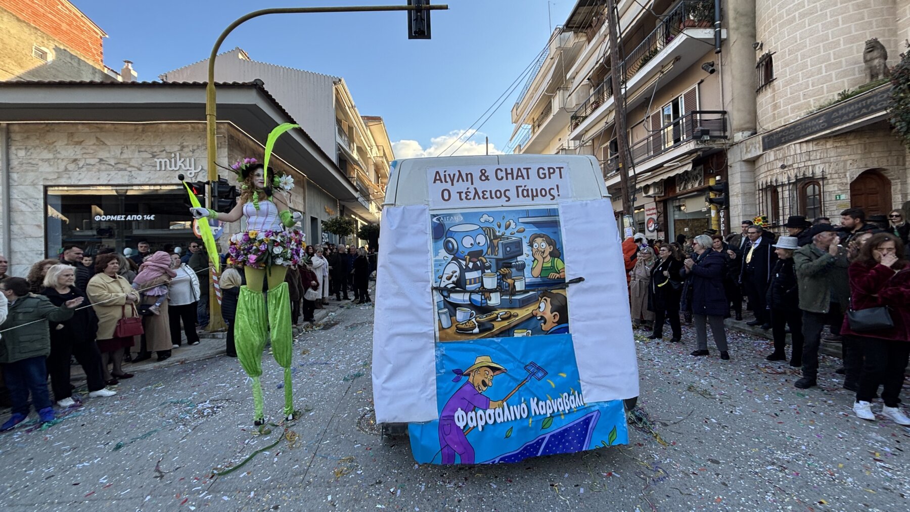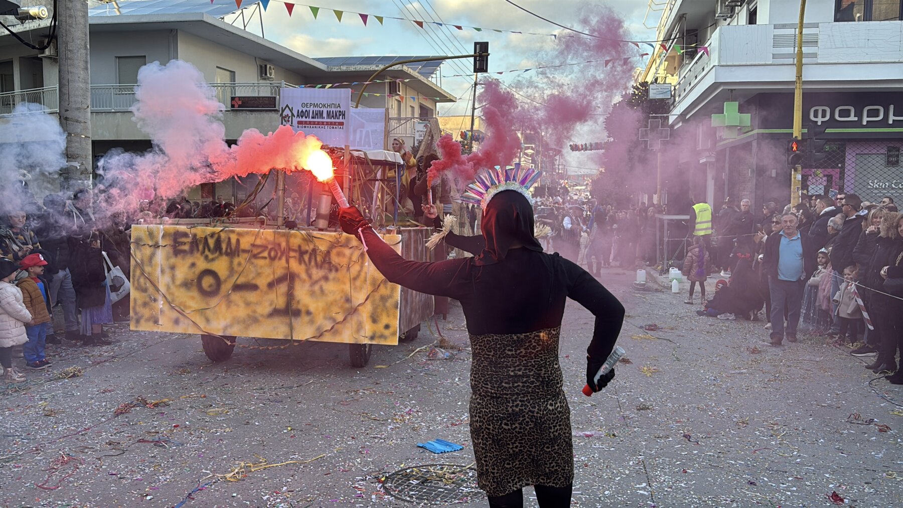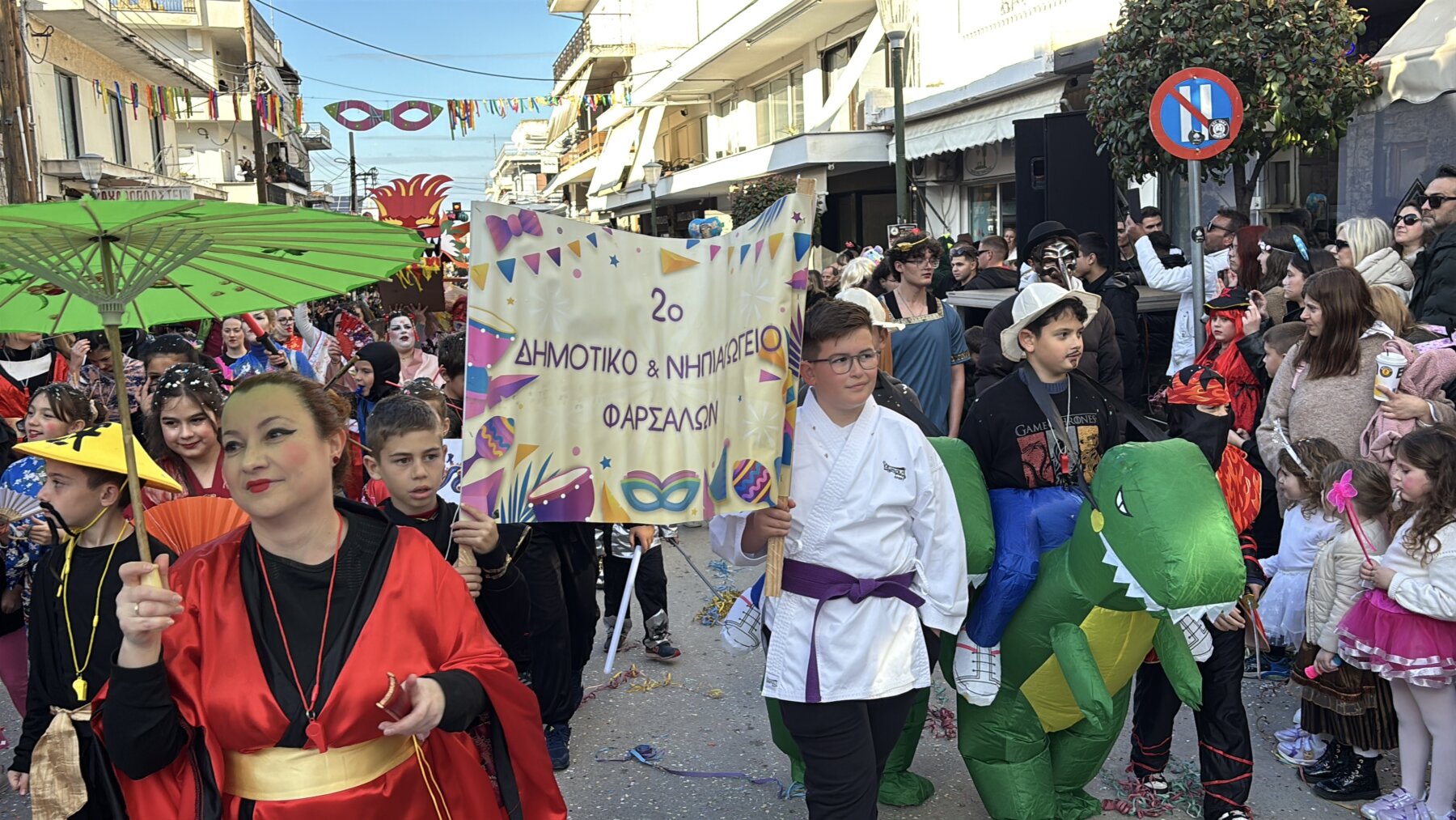 Με επίκεντρο τη μεγάλη παρέλαση που πραγματοποιήθηκε σήμερα το μεσημέρι, τα Φάρσαλα γιόρτασαν την κορύφωση της Αποκριάς. Η πόλη μεταμορφώθηκε σε ένα πολυπολιτισμικό σκηνικό, καθώς το φετινό κεντρικό θέμα, «Ο Γύρος του Κόσμου», έδωσε την ευκαιρία σε συμμετέχοντες και θεατές να ταξιδέψουν νοερά σε διαφορετικές ηπείρους και πολιτισμούς με τη μουσική του Βασίλη Αλεξανδρή. Τη παρουσίαση του καρναβαλίου έκανε ο ηθοποιός Γιάννης Καπετάνιος.