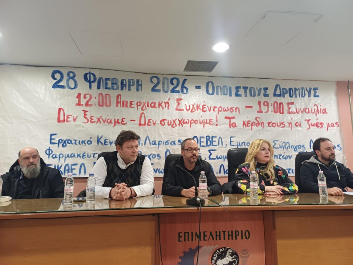Στο πλαίσιο της σημερινής συνέντευξης Τύπου των φορέων της πόλης και σε συνέχεια της χθεσινής σύσκεψης σωματείων εργαζομένων, συλλόγων, φοιτητικών, αγροτικών και επιστημονικών φορέων, ο Φαρμακευτικός Σύλλογος Λάρισας καλεί τα μέλη του και το σύνολο των πολιτών να συμμετάσχουν μαζικά στο συλλαλητήριο που θα πραγματοποιηθεί το Σάββατο 28 Φεβρουαρίου, στις 12:00 το μεσημέρι, στην Κεντρική Πλατεία Λάρισας, για τη συμπλήρωση τριών ετών από την τραγωδία – έγκλημα των Τεμπών.