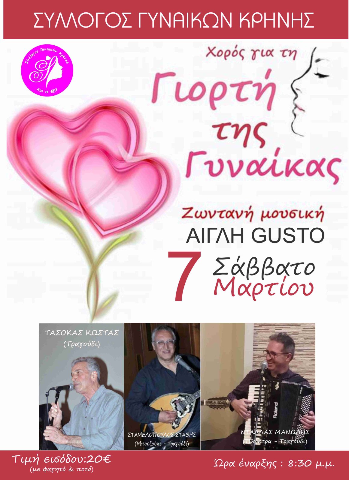 Η εκδήλωση θα πραγματοποιηθεί το Σάββατο 7 Μαρτίου στο «ΑΙΓΛΗ GUSTO», με ώρα προσέλευσης στις 8:30 το βράδυ.