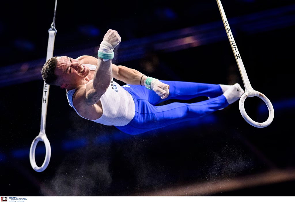 Το πρόγραμμα στους κρίκους του απέφερε 14.300 βαθμούς (βαθμός δυσκολίας 5,6) και έτσι πλασαρίστηκε στη 2η θέση, πίσω από τον Ίλια Ζάικα από τη Ρωσία, που «έβγαλε» βαθμολογία 14.600.