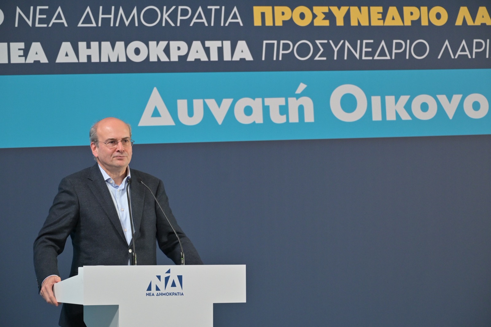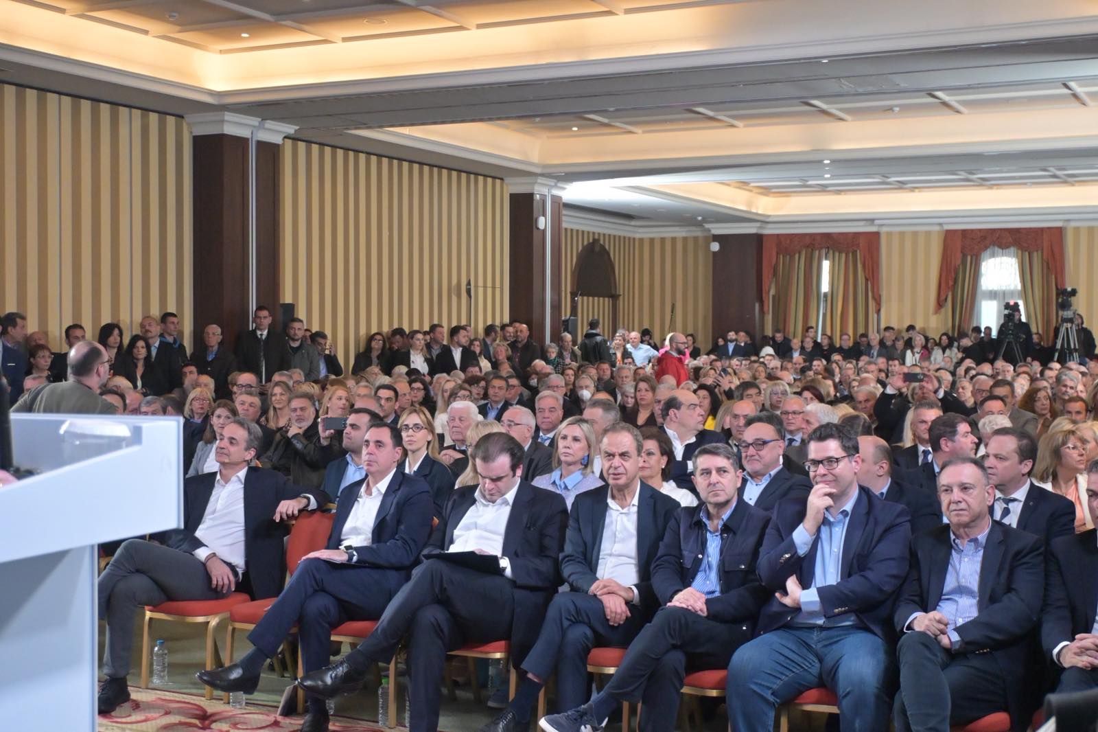 Κατάμεστη ήταν η αίθουσα του ξενοδοχείου Imperial σήμερα Σάββατο για την διεξαγωγή του προσυνεδρίου της Νέας Δημοκρατάις στη Λάρισα.