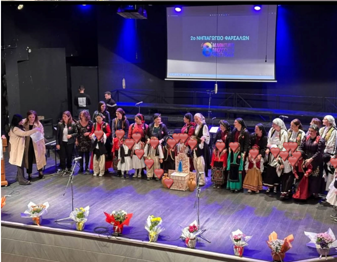 Τα παιδιά του Νηπιαγωγείου μας ταξίδεψαν στη μουσική και την παράδοση, τραγουδώντας και χορεύοντας τα αγαπημένα παραδοσιακά τραγούδια: Κοντούλα λεμονιά, Γερακίνα, και Μήλο μου κόκκινο.