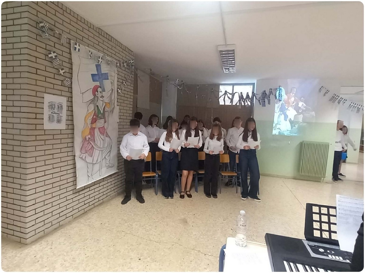 Το πρόγραμμα της εκδήλωσης ήταν πλούσιο και πολυδιάστατο. Οι απαγγελίες των παιδιών, με ποιήματα όπως «Ευαγγελισμός – Ελληνισμός» και «Ο Βράχος και το κύμα», απέδωσαν με ευαισθησία και δύναμη τα ιδανικά του Αγώνα, καλλιεργώντας τον λόγο και τη συναισθηματική έκφραση. Παράλληλα, η χορωδία του σχολείου, με τις μελωδικές ερμηνείες παραδοσιακών τραγουδιών όπως «Το χάραμα επήρα» και «Θούριος», έντυσε μουσικά τη μνήμη, γεφυρώνοντας το παρελθόν με το παρόν.
