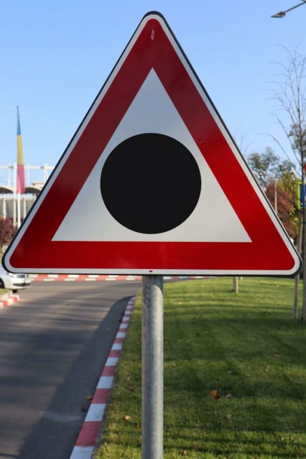Η συγκεκριμένη πινακίδα τοποθετείται την τελευταία δεκαετία σε δρόμους διαφόρων χωρών της Ευρώπης και είναι τριγωνικού σχήματος με κόκκινο περίγραμμα, που φέρει στο εσωτερικό της μία μεγάλη μαύρη κουκίδα σε λευκό φόντο.