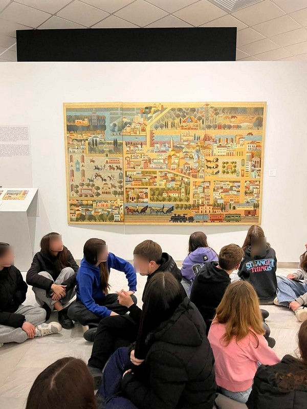 Η επίσκεψη συνεχίστηκε στη Δημοτική Πινακοθήκη, όπου τα παιδιά ήρθαν σε επαφή με την εικαστική δημιουργία μέσω της μόνιμης έκθεσης «ΕΠΑΝΑΣΥΝΔΕΣΗ/RECONNECT». Κατά την ξενάγηση, αναλύθηκαν θεματικές ενότητες όπως «Το Πνεύμα του Τόπου», τα «Ιδανικά Πλάσματα», η «Οικειότητα» και η «Αγωνιστικότητα», με τα έργα τέχνης να προσεγγίζονται ως πηγές πληροφοριών για την ιστορική και κοινωνική εξέλιξη.