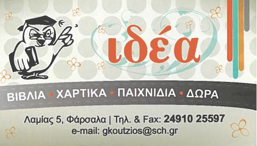 Το Βιβλιοπωλείο Ιδέα σας εύχεται Καλό Πάσχα Σάββατο, 11/04/2026, 11:11 Περισσότερα Το Βιβλιοπωλείο Ιδέα σας εύχεται Χρόνια Πολλά Καλή Ανάσταση και Καλό Πάσχα! Facebook Twitter Telegram Pocket Reddit Email Εκτύπωση Ακολουθήστε το ifarsala.gr στο Google News και μάθετε πρώτοι όλες τις ειδήσεις Κάντε εγγραφή στο κανάλι ενημέρωσης του ifarsala.gr στο Viber
