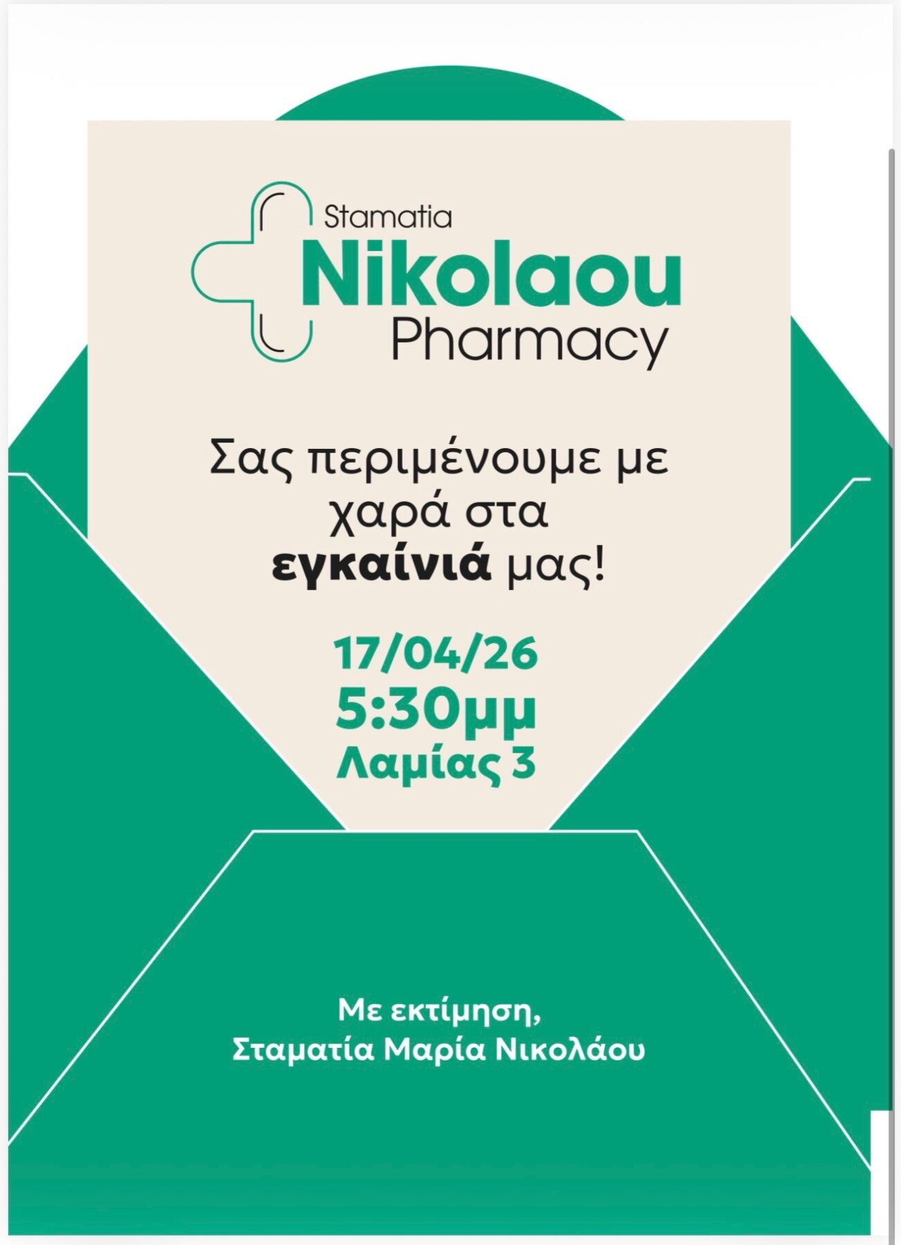 Με μεγάλη μου χαρά, σας προσκαλώ στα εγκαίνια του νέου μου φαρμακείου!
