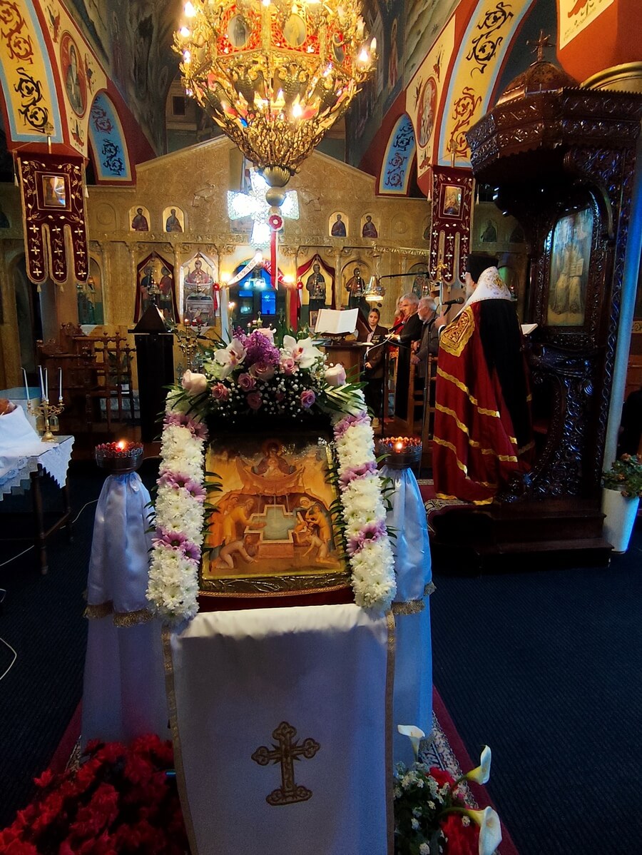 Επιπλέον, υπενθύμισε την παρουσία της Θεοτόκου στο υπερώο της Πεντηκοστής, κατά την κάθοδο του Αγίου Πνεύματος και τη συγκρότηση της Εκκλησίας. Από εκείνη τη στιγμή, επεσήμανε, η Παναγία καθίσταται το σταθερό πνευματικό κέντρο, σημείο ενότητας και η μητρική αγκαλιά του εκκλησιαστικού σώματος.