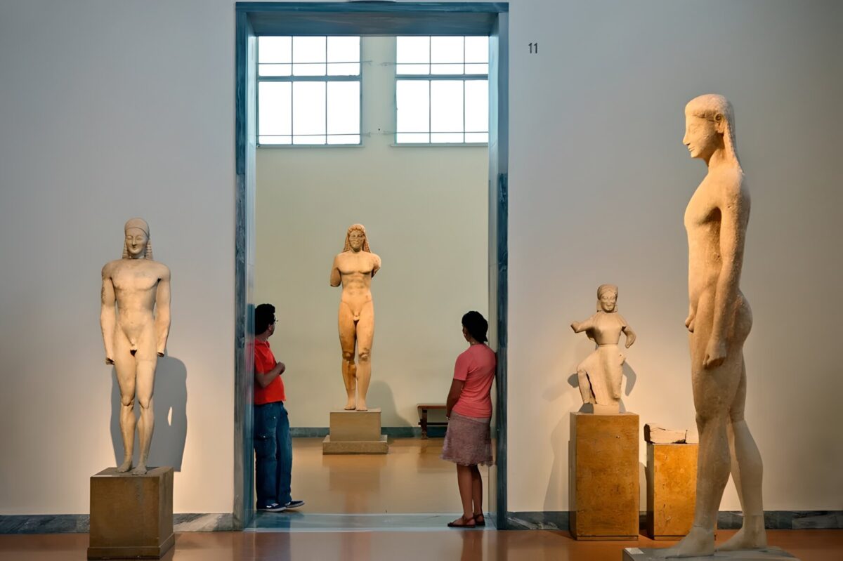 Στην αρχαϊκή ελληνική γλυπτική, η στάση των Κούρων με το αριστερό πόδι σε προβολή αποτελεί έναν από τους πιο αναγνωρίσιμους κανόνες της τέχνης. Πρόκειται για μια επιλογή που συνδυάζει την επίδραση του αιγυπτιακού πολιτισμού, τον θρησκευτικό συμβολισμό και τις τεχνικές ανάγκες των γλυπτών της εποχής.
