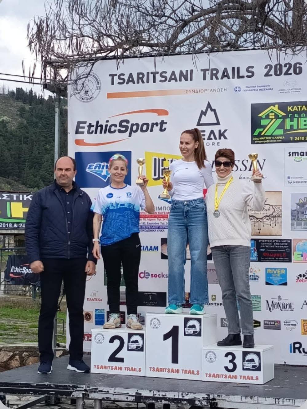 Η αγωνιστική δράση ξεκίνησε την Κυριακή 5 Απριλίου στην Τσαριτσάνη, όπου διεξήχθησαν αγώνες Trail. Στη διαδρομή των 17 χιλιομέτρων, η Αργυρούλα Μπούσιου σημείωσε εξαιρετική εμφάνιση, καταλαμβάνοντας την 37η θέση στη γενική κατάταξη και την 1η θέση στην ηλικιακή της κατηγορία με χρόνο 2:09:52. Στην απόσταση των 9 χιλιομέτρων, ο Σωκράτης Σούρλας τερμάτισε στην 8η θέση με χρόνο 59:24, ο Γιώργος Παπαδόπουλος στην 69η θέση με 1:26:44, ο Νικόλαος Σφακιανός στην 101η θέση με 1:38:20 και ο Αναστάσιος Φουτζόπουλος στην 109η θέση με χρόνο 1:41:14.
