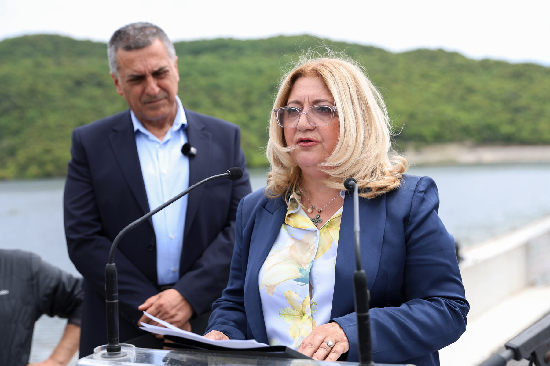 Ο Περιφερειάρχης Θεσσαλίας Δημήτρης Κουρέτας στην σύντομη τοποθέτησή του ανέφερε ότι «το σημερινό έργο δείχνει ότι η διοίκηση έχει μια συνέχεια. Σε αυτή την προσπάθεια που ολοκληρώθηκε τα τελευταία δύο χρόνια συνέβαλαν πολλοί: η προηγούμενη Περιφερειακή Αρχή, οι παριστάμενοι πρώην Νομάρχες, η Αντιπεριφερειάρχης κ. Ντιντή, ο σύμβουλος Θαν. Τσιάρας και ο Στρατηγός Ε.Α. Ηλίας Λεοντάρης, ο οποίος μου εξήγησε τότε, όταν ξεκινήσαμε, την ανάγκη να ολοκληρωθεί το έργο όταν αυτό είχε κάποια προβλήματα». Στη συνέχεια ο κ. Κουρέτας αναφέρθηκε στα επόμενα βήματα που είναι η ολοκλήρωση της μελέτης για την άρδευση καθώς υπάρχουν καλλιέργειες, αρκετές χιλιάδες στρέμματα που μπορούν να ποτιστούν από τον ταμιευτήρα. «Ταυτόχρονα θα προσπαθήσουμε να αναδείξουμε τον τουριστικά να το επισκέπτονται σχολεία και ήδη έχουμε ξεκινήσει μια διαδικασία με το Υπουργείο Παιδείας, να έρχονται τα παιδιά να καταλάβουν πώς είναι ένα μικρομεσαίο φράγμα».